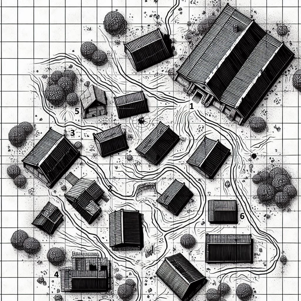 These are just possibilities of adventure hooks from this map. But DMs feel free to use the map and incorporate it into your world… building whatever adventures you would like into this village.